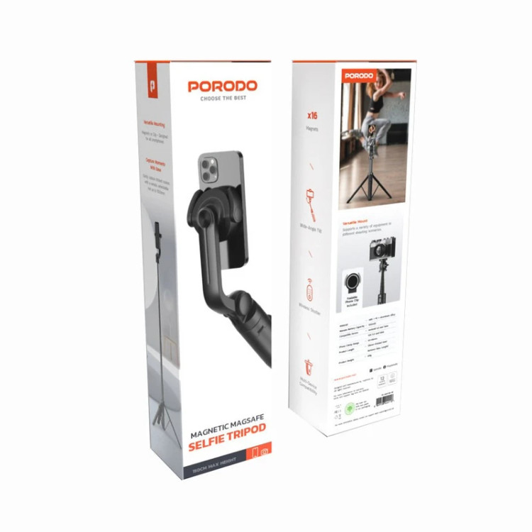 مونوپاد و پایه نگهدارنده مگنتی موبایل پرودو مدل Selfie Tripod یک ابزار چندمنظوره و کاربردی برای عاشقان عکاسی و فیلمبرداری با موبایل است. این محصول با طراحی مدرن و استفاده از مواد با کیفیت بالا، به شما امکان میدهد تا با اطمینان کامل دستگاه خود را نگه دارید و تصاویری با کیفیت بالا بگیرید. این مونوپاد با قابلیت تبدیل به سهپایه و داشتن ریموت کنترل، یک انتخاب عالی برای استفاده در سفرها، مناسبتها و یا حتی در خانه است