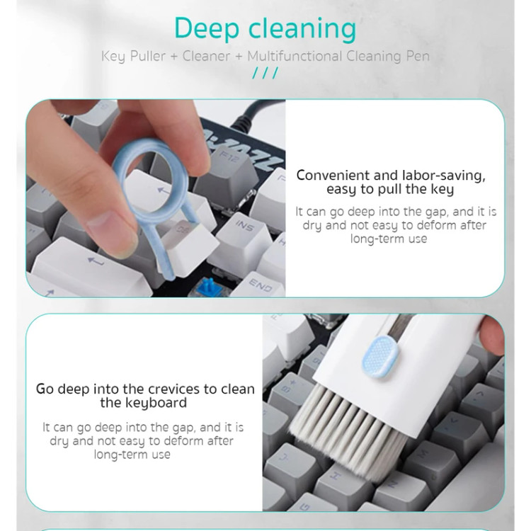 دارای برس قلمی جهت تمیز کردن حفره قرارگیری ایرپاد / دارای سری نوک نیز جهت پاکسازی انواع کثیفی در گوشه های ایرپاد / تمیز کاری بدون ایجاد خطوخش و آسیب / قلم دارای سه سری سیلیکونی / ابزار نظافت صفحه کلید