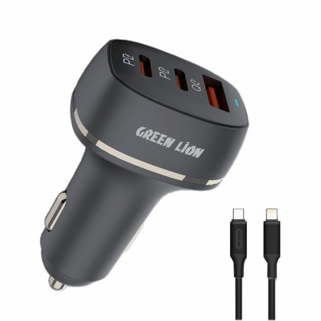 طراحی شارژر فندکی گرین لاین مدل 50 وات سه پورت با کابل لایتنینگ