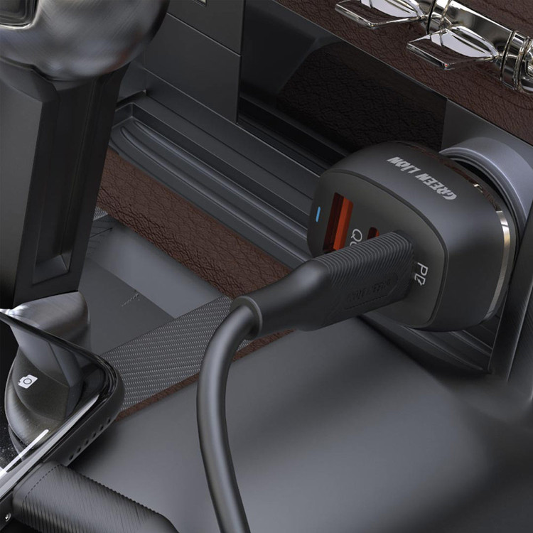 شارژر فندکی 50 وات گرین لاین مدل GN2PD1QCLCCBK با کابل لایتنینگ
