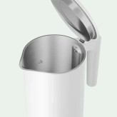 کتری برقی جدید شیائومی با طراحی زیبا و عملکرد دقیق، از شرکت شیائومی است که با استفاده از کنترل پنل بصری، شما میتوانید دمای بهینه را برای تهیه نوشیدنی مورد علاقهتان از چهار گزینه پیشنهادی انتخاب کنید و به راحتی آن را تهیه نمایید. شرکت شیائومی کتری برقی MJHWSH03YM را با طراحی مینیمالیستی وارد بازار نموده است. بدنه این کتری از پلاستیک PP مات با مقاومت بالا ساخته شده است. قسمت بالای کتری شامل یک درب بازشو بزرگ میباشد که دارای سیستم بازگشتناپذیری برای جلوگیری از پاشیدن و جوشاندن قطرات آب انباشته شده روی درب است. همچنین، این درب به وسیله یک کلید تکدستی به آسانی و به صرفه باز میشود. درب کتری در دو مرحله با زاویههای گسترده باز میشود که تمیزکاری آسان را تضمین میکند. در مرحله اول، درب تا 30 درجه و در مرحله دوم تا 70 درجه قابل باز شدن است که برای پرکردن کتری بسیار مناسب میباشد. یک صفحه نمایش الکترونیکی در بدنه چایساز ترموستاتیک شیائومی جایگرفته است که طراحی مینیمالیستی را تحت تأثیر قرار نمیدهد و دمای آب را به طور دقیق نشان میدهد. شما میتوانید دمای آب مورد نظر خود را با استفاده از کنترلهای الکترونیکی بصری و 4 تنظیم - 45 درجه سانتیگراد / 60 درجه سانتیگراد / 85 درجه سانتیگراد / 100 درجه سانتیگراد - انتخاب کنید و از نوشیدنیهای گرم خود بهرهمند شوید. ترموستات STRIX موجود در کتری برقی شرکت شیائومی قادر است به هزاران بار تست جوش را تحمل کند. این ترموستات از برند بریتانیایی STRIX به طور هوشمندانه عمل میکند و دقیقاً زمانی که آب به دمای جوش میرسد، جریان برق را قطع میکند. شما میتوانید از شاسی گرمایشی با صفحه آلومینیومی ضخیمشده استفاده کنید تا به طور یکنواخت گرم شود و کاملاً بجوشد. صفحه آلومینیومی ضخیمشده برای گرم کردن شاسی انتخاب شده، گرمای یکنواختتری ایجاد کرده و باعث میشود آب کاملاً جوشانده شود و ایمنتر باشد. این موضوع سلامت آب آشامیدنی شما و خانوادهی شما را تضمین میکند. این کتری دمای آب را به مدت 12 ساعت پس از گرم شدن حفظ میکند؛ بنابراین شما میتوانید مدت زمان بیشتری از نوشیدنیهای مورد علاقهی خود لذت ببرید. حتی میتوانید قبل از رفتن به رختخواب دما را تنظیم کنید و هر زمانی که صبح از خواب بیدار میشوید، از آب گرم نوش جان کنید.
