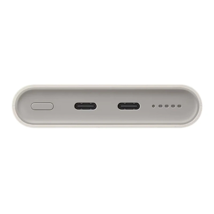 طراحی این مدل مانند سایر کارهای سامسونگ ساده و در عین حال زیبا و کاربردی است. بدنه ساده است و ظاهر سرامیکی مات دارد که جلوه شیکی به آن میدهد، تنها در کنار آن میتوانید عدد ۱۰ را که نشان دهنده ظرفیت باتری است ببینید. وزن پاوربانک حدود ۲۲۰ گرم است که در دسته استانداردی قرار میگیرد و حمل و نقل آن اصلا سخت نخواهد بود. در کنار این موضوع، ابعاد پاوربانک هم استاندارد است و ضخامت حدود ۱.۶ میلیمتری هم به اندازه کافی زیباست. در وجه پایینی پاوربانک میتوانید پورتهای شارژ را ببینید که در کنارشان LEDهای نشانگر برای نشان دادن میزان شارژ باقیمانده قرار گرفتهاند، البته دکمه پاور هم در همین بخش تعبیه شده است که استفاده از پاوربانک را راحتتر میکند. در جعبه دستگاه یک عدد کابل تایپ سی به تایپ سی هم قرار گرفته است و نیازی به خرید کابل اضافه برای استفاده از پاوربانک نخواهید داشت. یکی دیگر از نکات جذاب این پاوربانک، این است که برای ساخت آن از مواد بازیافتی با کیفیت بالا و UL-certified استفاده شده است تا علاوه بر کاربردی بودن یک دستگاه دوستدار محیط زیست هم داشته باشید.