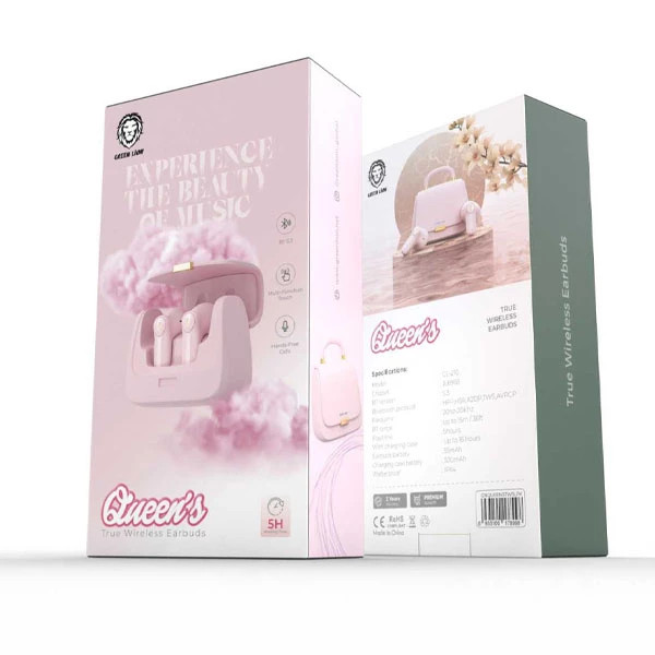 هندزفری بلوتوث گرین لاین مدل queen یکی از بهترین و با کیفیتترین هندزفری بلوتوثی هایی است که به علت طراحی فانتزی و بی نظیرش طرفداران بسیاری پیدا کرده است. هندزفری بلوتوثی گرین در طراحی مدل queen تمام ظرافت و کیفیت را بکار گرفته است تا با زیباترین طراحی بالاترین کیفیت را ارائه دهد. هندزفری بلوتوثی گرین لاین در مدل کوئینز به صورت یک کیف دستی طراحی شده است. هندزفری بلوتوثی گرین لاین مدل کوئین در سه رنگ موجود است. رنگ سفید، صورتی کمرنگ و صورتی پررنگ(سرخابی).