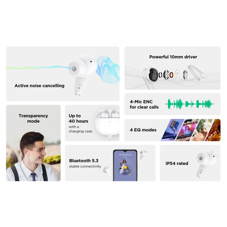ابعاد ایرباد ۳۰.۵x۲۰.۲x۲۴.۱۷ میلیمتر / فناوری نویز کنسلینگ فعال / دارای چهار میکروفن داخلی جهت برقراری تماس با وضوح صدای بالا
