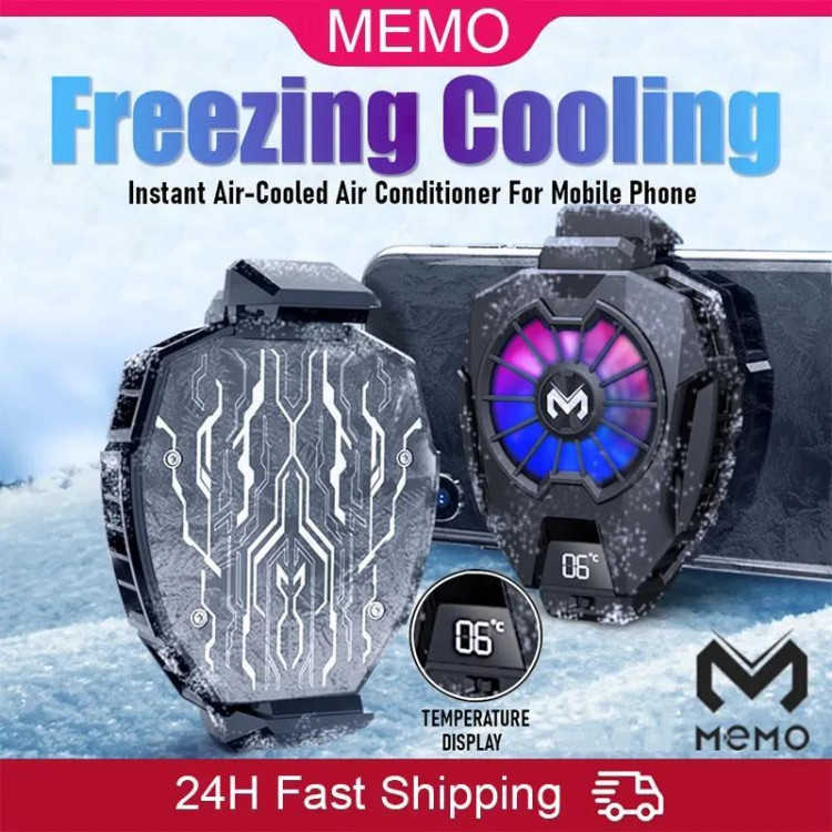 فن memo dl05 یک خنک کننده رادیاتوری موبایل میباشد که دارای دماسنج دیجیتالی برای نشان دادن دمای گوشی شما می باشد. این فن دارای LED های RGB نیز می باشد. بر روی این فن دکمه سوییچ روشن خاموش نیز تعبیه شده است. این فن دارای باطری داخلی نبوده و از برق مستقیم پاوربانک یا کلگی تغزیه می کند.